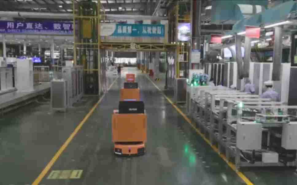 为车载冰箱物流配送打造的智能解决方案,,包含产中物流通过潜伏举升AMR搬运至线边,,,,产后成品物流智能仓储,,流程包含产中物流智能齐套入库,,,线边安灯叫料AMR智能配送至线边,,,成品入库、、、、出库,,,通过无人堆高车机器人,,,智能仓储管理替代人工作业管理,,实现更高存储、、、、更高效率、、更具柔性化的解决方案。。